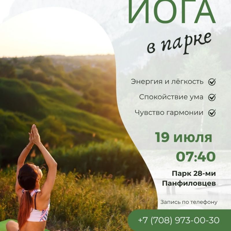До­ро­гие дру­зья, при­гла­ша­ем вас на йо­гу в пар­ке 19 июля — за­ря­дить­ся энер­ги­ей, вдох­но­ве­ни­ем и хо­ро­шим на­стро­е­ни­ем на весь день!