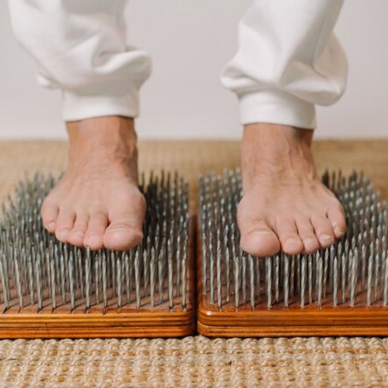 это уни­каль­ная прак­ти­ка, ко­то­рая пред­по­ла­га­ет сто­я­ние бо­сы­ми но­га­ми на плат­фор­ме с гвоз­дя­ми. Она ос­но­вы­ва­ет­ся на воз­дей­ствии на био­ло­ги­че­ски ак­тив­ные точ­ки стоп, что улуч­ша­ет кро­во­об­ра­ще­ние, сти­му­ли­ру­ет ра­бо­ту нерв­ной си­сте­мы и по­мо­га­ет до­стичь эмо­цио­наль­но­го рав­но­ве­сия.